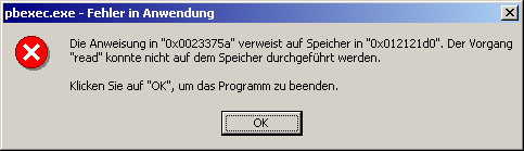 einen Speicherbereich nicht ausgeführt werden konnte.