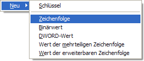 Fügen Sie dann über das Kontextmenü eine neue Zeichenkette hinzu