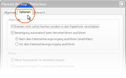 Sie erreichen den Dialog zur Konfiguration der Datenträgerbereinigung