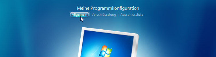 Programmeinstellungen, zur Vergabe des Kennwortes für die Datenverschlüsselung und zur globalen Ausschlussliste.