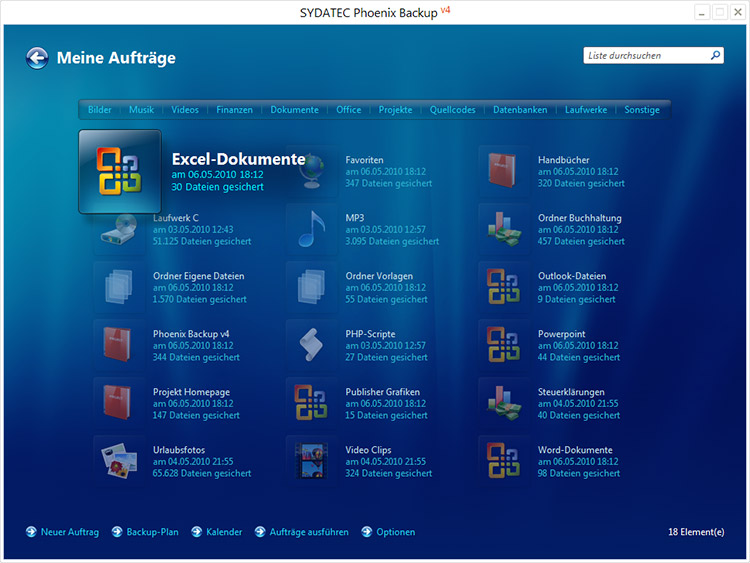 Mit Phoenix Backup legen Sie permanente Datensicherungsaufträge an, in denen deklariert wird, welche Daten gesichert werden sollen.