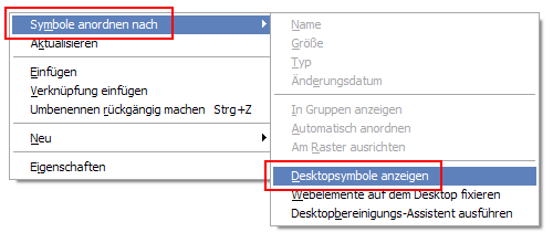 Um die Anzeige der Desktopsymbole zu reaktivieren, deaktivieren Sie entweder