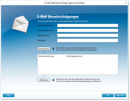 um die abzufragenden E-Mail-Konten zu konfigurieren.